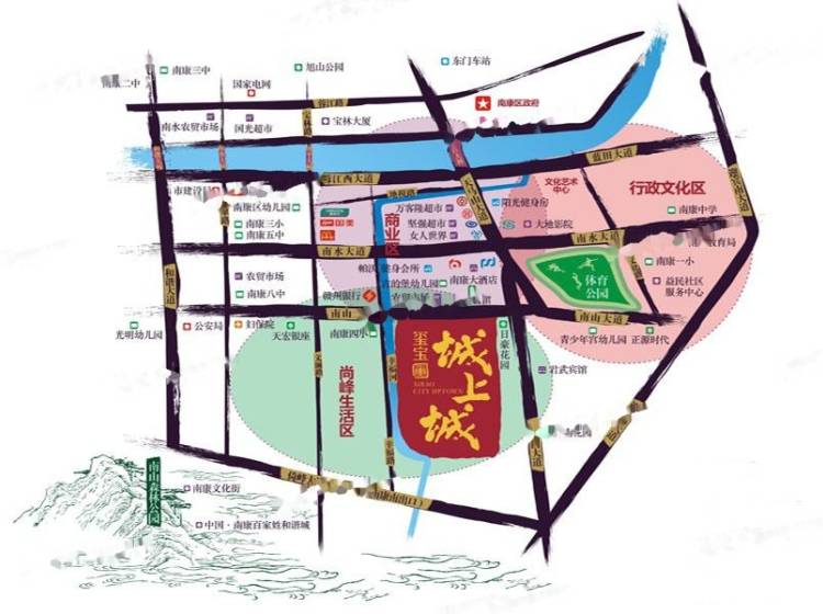 玺宝城上城项目位于南康南水新区南山大道第四小学旁。占地约38亩,总建筑面积约8.7万平方米,由四栋高层洋房和和三栋风情商业街组成。总户数348套,户户坐北朝南,容积率2.0,绿化率30%。车位配比达1:1.5,车位数量达672个。 玺宝·城上城将城市的居住、商业、自然、艺术串联一起,凝聚整座城的精华,打开理想住宅的都市梦想,开启立体式多功能复合居住模式,引领新时代的绿色生活潮流,在有限的区域呈现都市生活的无限可能。