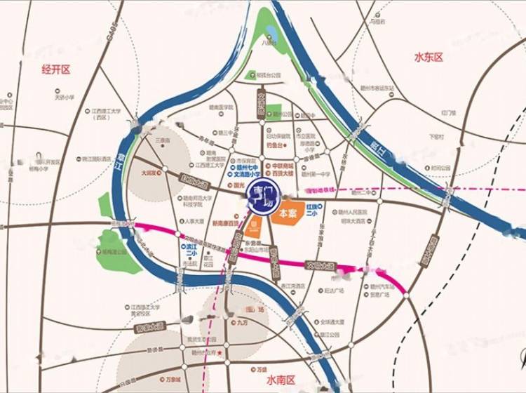 老城区南门口红旗大道与营角上路交汇处(原赣州饭店)