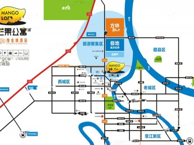 芒果公寓是由赣州宁泰房地产开发有限公司开发,占地面积5523.69m2,建筑面积8285m2,容积率1.5,地处开发区优越位置,集聚人群消费驱动力,描绘赣州城市新未来。 芒果公寓项目位于主赣州市经济技术开发区湖边镇105国道旁,湖边镇政府斜对面。项目区位优越,是老城区与开发区交接处,享受老城区成熟商业配套的同时,搭乘开发区大发展之风。