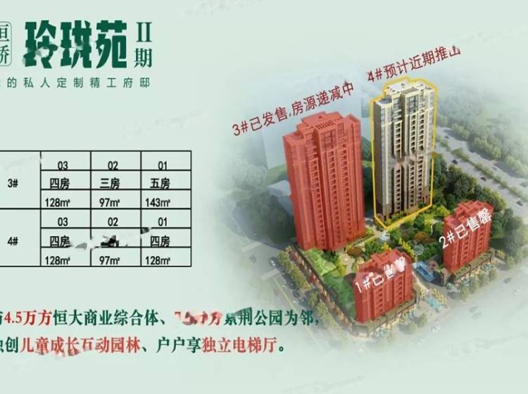 恒骄·玲珑苑项目开发商为赣州市恒骄实业有限公司。恒骄·玲珑苑将建设4栋住宅,其中,1、2#楼为小高层,3、4#楼为高层,项目规划居住户数为153户,将打造98-142㎡一梯两户、两梯三户户型。 恒骄·玲珑苑位于经开区核心中央生活区,香江大道、华坚北路两大主干道直通全市,交通便利,项目周边拥有恒大城市综合体、天骄小学、金凤梅园主题公园,生活配套一应俱全。 项目的儿童成长互动园林,把园林做成一个儿童乐园,还给最需要它的人。 99-142㎡三至五房低密度住宅社区,居住舒适度更高,板楼设计,电梯入户设计,实用方便。