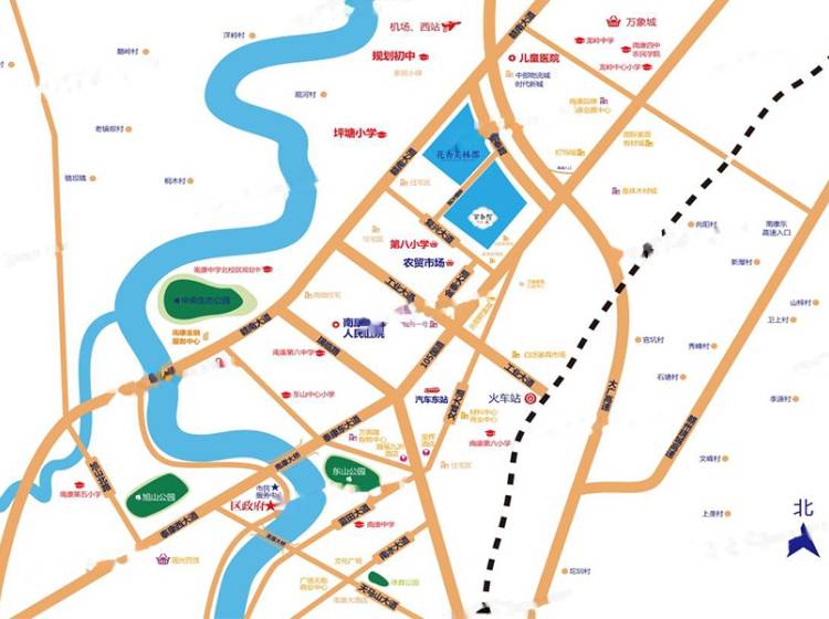 南康东山新区赣南大道与复兴大道交会处(泓泰美食城旁)