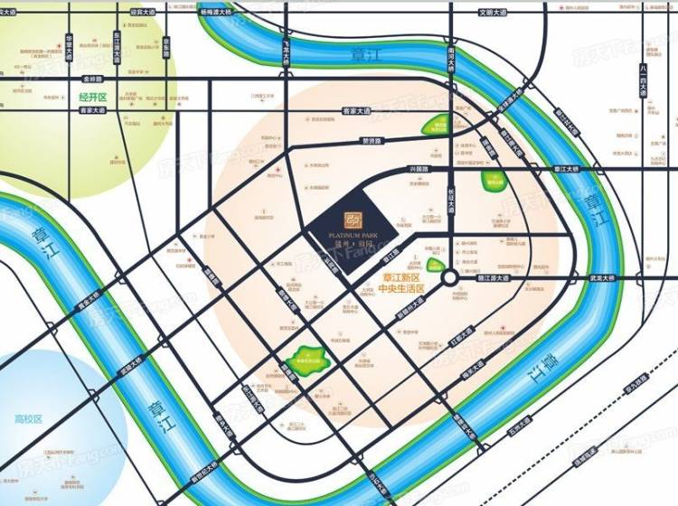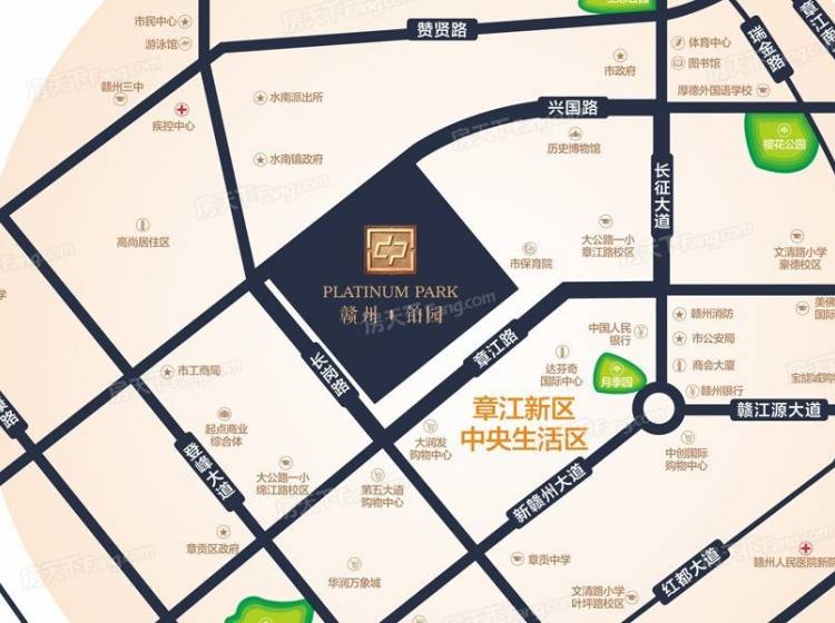 赣州·铂园位于赣州章江新区兴国路水南镇镇政府斜对面,城区核心位置。总建筑面积约10.6万㎡,由5栋品质高层、特邀上市品牌物业公司护航,是赣州市章江新区瞩目的宜居大盘。周围长征大道、钨都大道、兴国路等主干道环伺。项目周边分布赣州多个高档社区,居住氛围纯粹,是目前赣州市主城规模瞩目的高品质大盘。距离赣州市政府仅500米,距离万象城、九方等商业综合体仅5min路程,快速路建成后,去高铁站、机场也仅需15min时间,可以说项目周边的交通路网完成之后,赣州·铂园处于赣州都市区的枢纽位置,通往各地都非常便利。