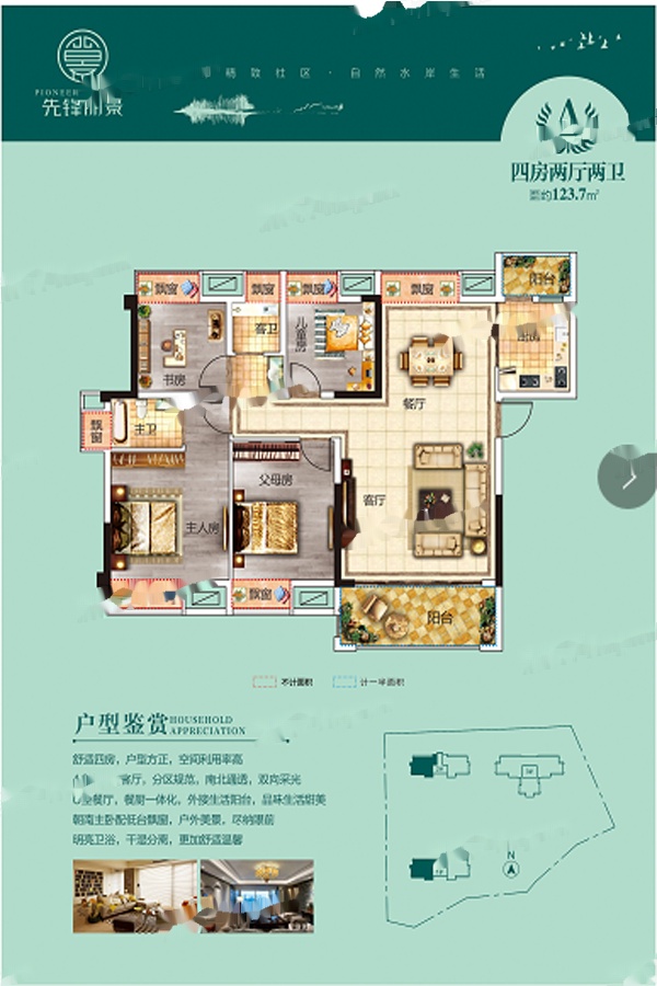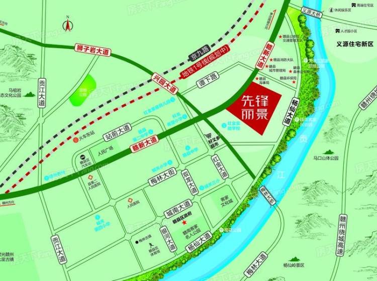 一座城市,一个版块,一种生活; 城南新区,是赣县区的核心组成部分,近年来,政府加大对城南片区的规划与建设,将其打造成为集行政、商务、金融、文教、博览、休闲为一体的多功能中高档综合区域。 先锋丽景位于城南新区东段新兴板块,处在贡江醉美江景观赏地段; 片区内交通便利,连接赣新大道城市金脊,与各区域四通八达;配套成熟,临近赣县七小、赣县中学,3min内可通达各繁华街道; 小区采用人车分流管理,35%高绿化率,一中心多节点园林景观设计,营造舒适的人文居住社区;92-125㎡三至四房观江美宅,纯板楼设计,通风采光俱佳,户户大开间,房房带飘窗,温馨舒适,至美江景尽收眼底; 选择先锋丽景,出则繁华,入则宁静,为您带来舒居生活体验。