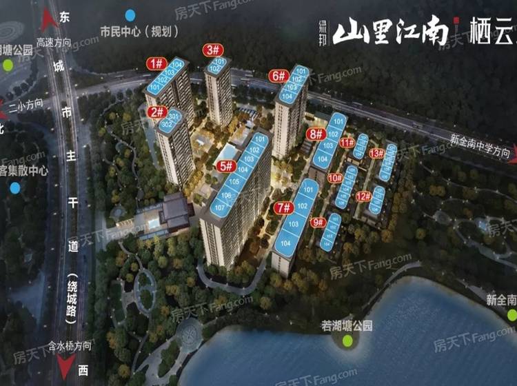 绿邦·山里江南是由北京绿邦置业开发,总占地300亩,建筑面积约50万方。项目由四个地块组成,由国内设计团队及一流施工单位倾力打造的全南300亩生态大盘。