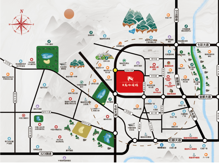 瑞金 象湖镇七彩大道与龙珠路北路交汇处中梁龙吟国瑞营销中心
