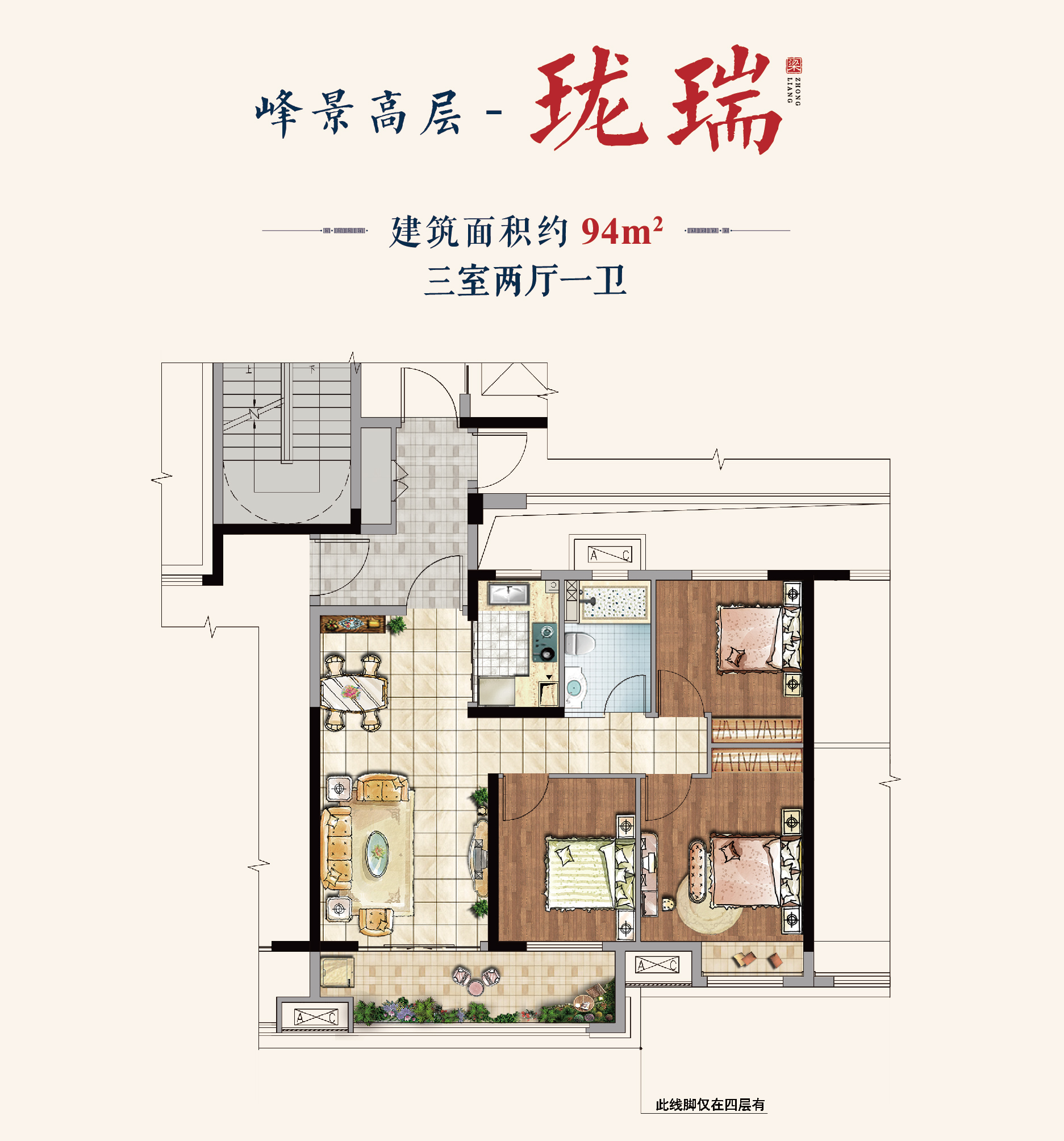 3室2厅1卫-峰景高层珑瑞-94㎡