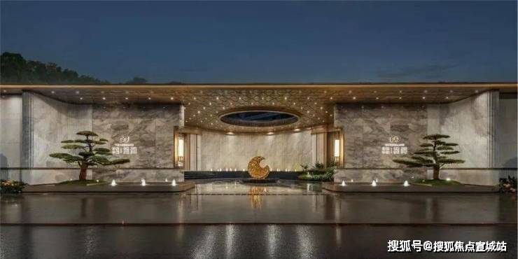 以星级精奢酒店门庭为美学蓝本,匠造约50米超长气质门庭,大尺度平顶屋檐,对称式布局,营造高端住区的庄严;卡慕白奢石景墙与罗汉松相映成韵,令尊崇在无声处彰显。