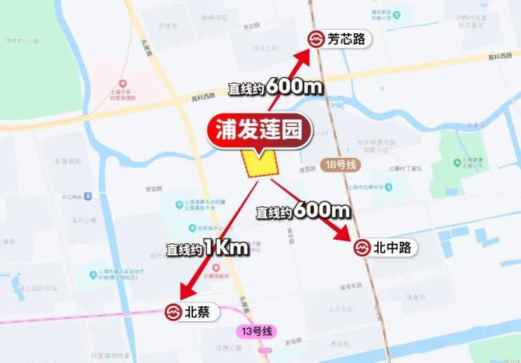 交通配套:项目周边有轨交7、13、18号线,步行距离大约600多米,步行到13号线北蔡站大约1.1km。