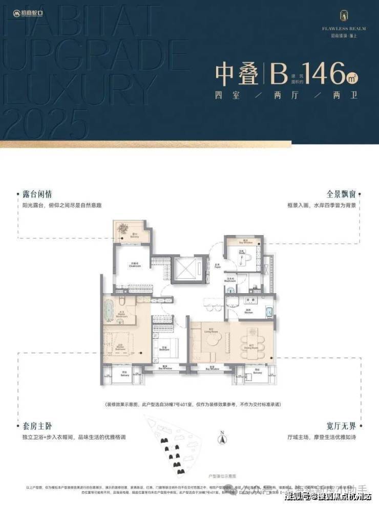叠墅越级|约146-152㎡水岸墅居√下叠约152㎡海派水岸世家院邸餐客厅无界互动,串联家庭社交场主卧星幕阳台,晨光暮色皆成诗意背景挑高私属地下室,让个人的品味与个性在此尽情施展