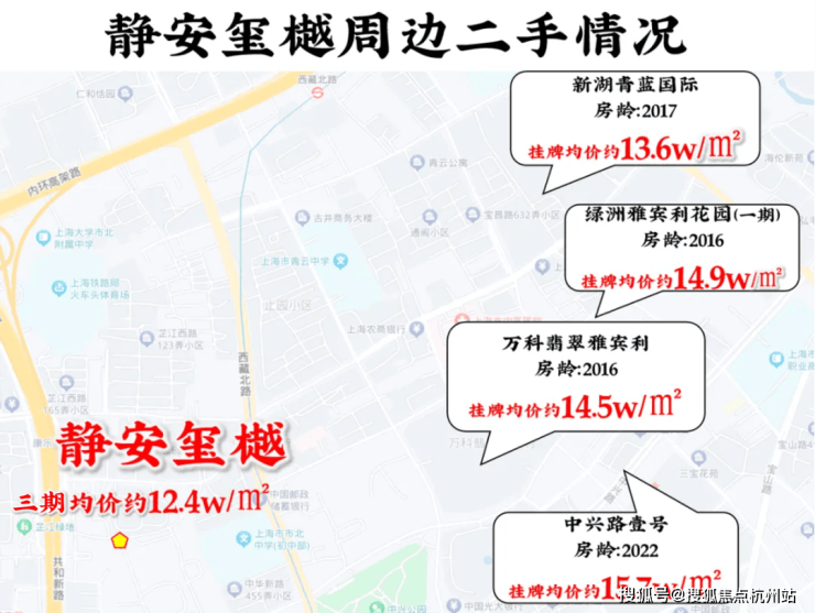 尤其是像静安玺樾所在的静安内环内而言,约12.4w/㎡的均价直接把性价比拉爆!