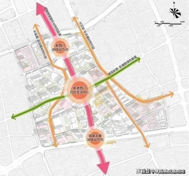三核指老西门地铁站、陆家浜路地铁站以及红房子医院为中心的社区核。
