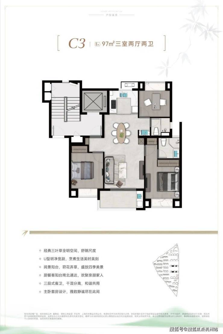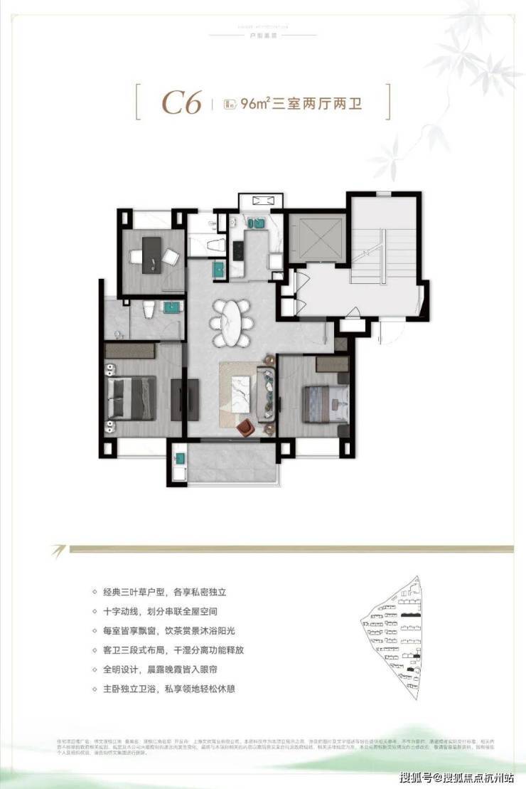 C6户型建面约96㎡3房2厅2卫: