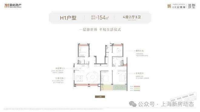 建面约154㎡中平层大四房:约14.2米南向巨幕面宽,结合约7.1米奢阔横厅,塑造出开阔明亮的、兼具仪式感与舒适度的家族聚光主场。四间卧室科学布局,从容满足二胎家庭或三代同堂的居住需求。每间卧室皆享独立私密,让家人各安其境,和睦相融。南向双景阳台与露台,将郊野公园的四季风光引入室内,让自然成为日常生活的背景。