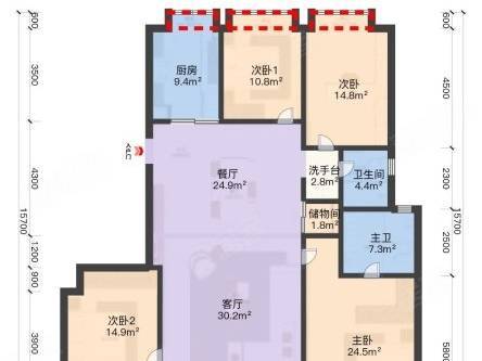 亮点:四叶草竖厅格局;南北通透;双套房 + 双次卧;5 飘窗 + 1 阳台;使用率 84%