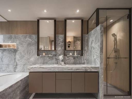 细节:全屋石材、定制收纳柜、钢化玻璃淋浴房