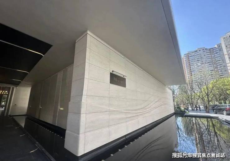稍微走近一点就能看到采用了大量的弧形元素和石材材料。石材的质感本身就厚重,在上面叠加类似海浪的线条弱化了厚重感,反而显得轻盈。