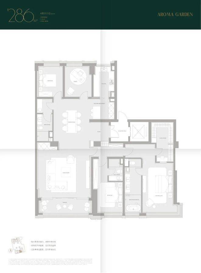 491㎡户型:南向面宽 26 米、双主卧、中西双厨、家政动线独立