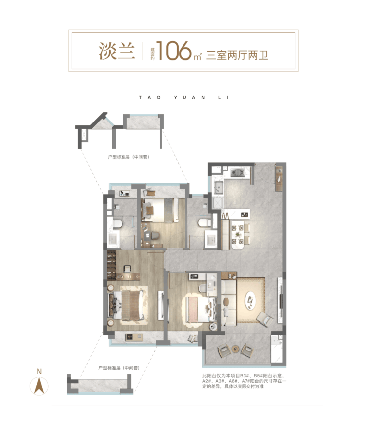 建面约 106㎡三室两厅两卫:刚改家庭首选,平衡舒适与实用