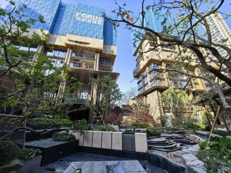 而在3、5号楼之间,则搭建了【围炉夜话】场景空间。古木纹奢石砌成的火炉旁,整木炭化石凳散发着山林野趣,一株红舞姬枫树翩然伴舞。冬日傍晚,好友围坐,体会名门温情。