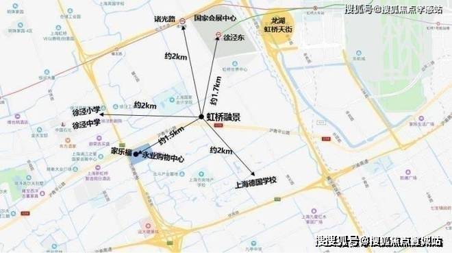 虹桥融景售楼处电话☎:400-9696-420(预约热线)✔✔✔邻国家会展中心,距离2号线徐泾东站约1.7km,距离17号线诸光路站约2km,处在徐泾比较核心的位置。项目步行范围内公交车线路不多,但附近的徐泾5路可以直达徐泾东。南侧有沪青平公路,东接延安路高架,前往市区也比较方便。