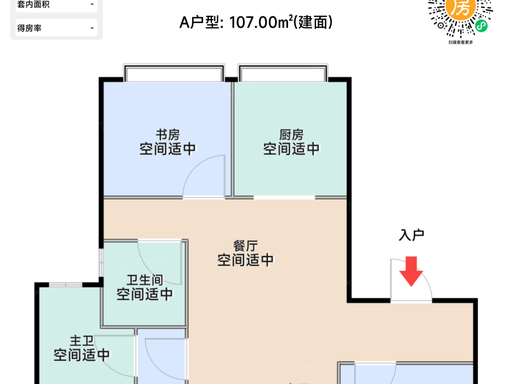 亮点飞机户型、三开间朝南;独立玄关;南北通透;主卧套房;得房率约 79%