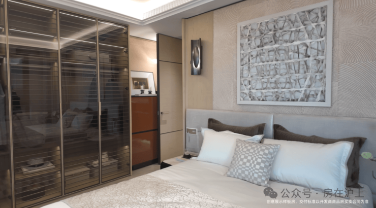 主卧套房面宽约4.8米,采用酒店式配置,配备独立卫浴与超大飘窗,尺度与舒适度俱佳。