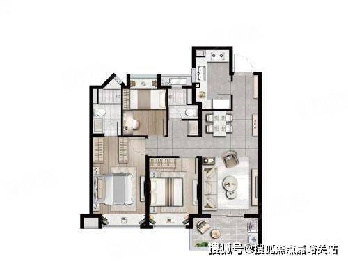 69㎡ 2 房 2 厅 1 卫:总价 310-350 万,紧凑两房、刚需入门