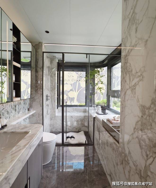 128㎡的厨房依托飘窗,加长了操作台面。而卫生间,即便是107㎡,也依托飘窗,拥有了更大的洗浴空间。