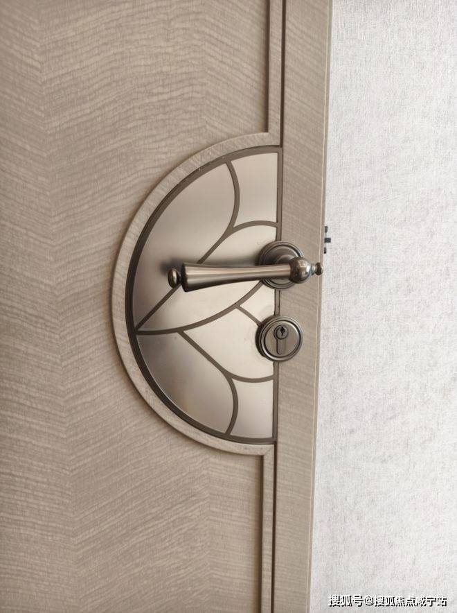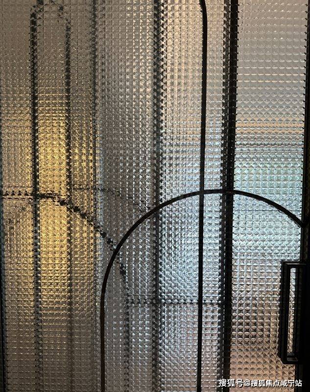 再来看玻璃移门,极窄边上吊柜设计,玻璃花纹做了特殊化处理,将项目logo演绎后纹入,同样的处理也在空调风口、入户门和套内门体现,提供了更高的仪式感,代表的是象屿业主的圈层文化。