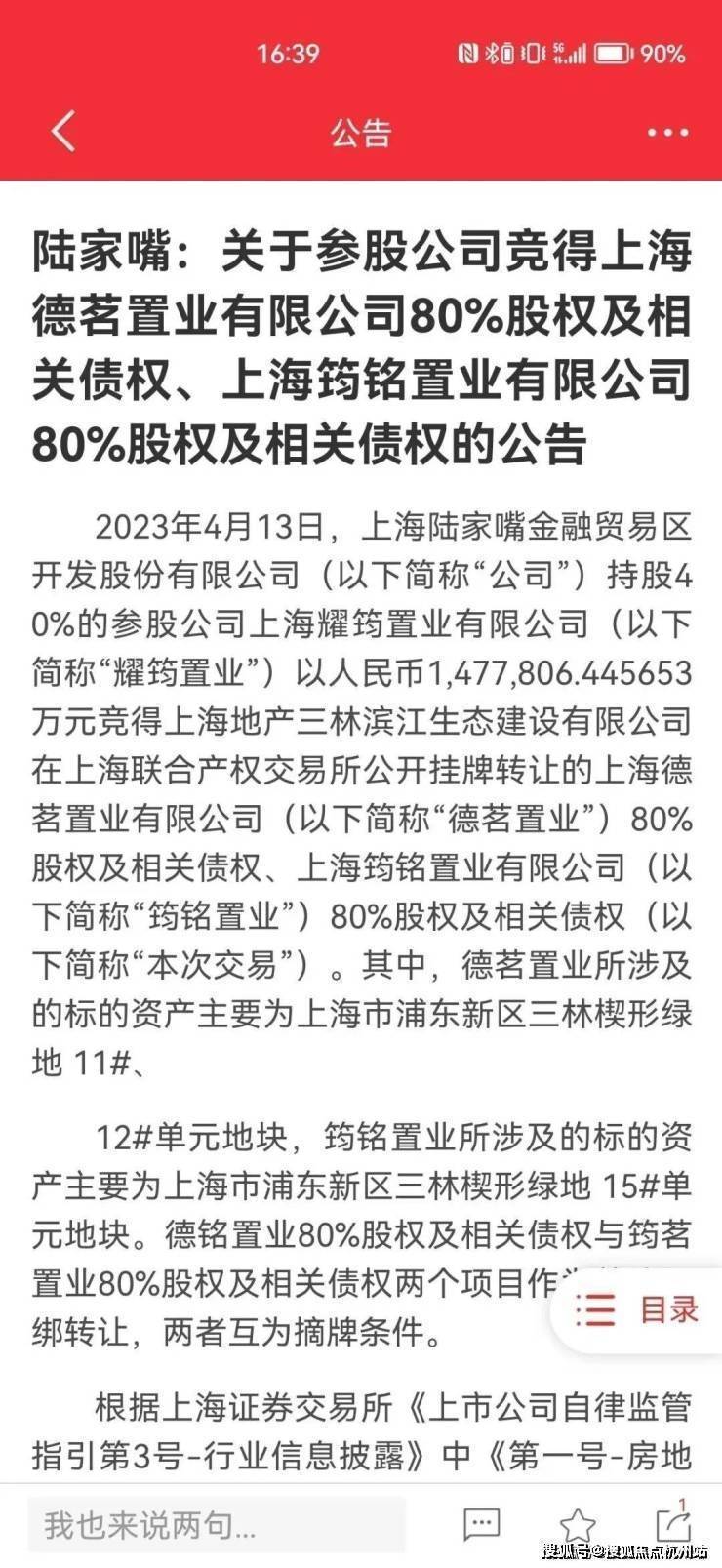 2023年3月7月,上海地产集团三林滨江南片区项目上架上海联合产权交易所进行股权交易,本次出让2个项目包,合计14块地,最终4月由陆家嘴集团斥资约147.78亿拿下。