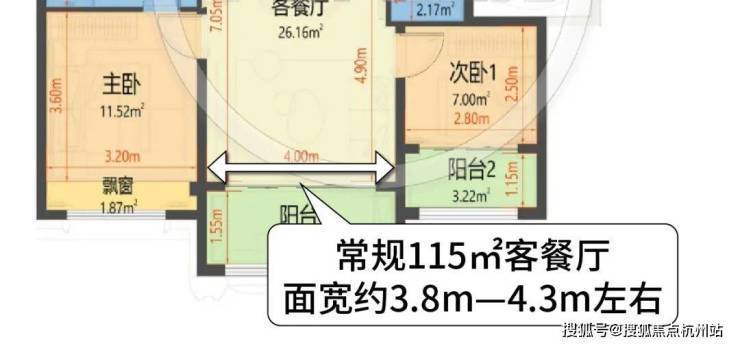 115-120㎡的高层产品,客餐厅的面宽大多都在3.8-4.3米左右。