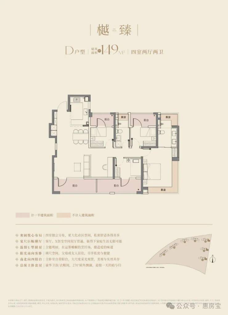 经典动静分离户型,4.5开间朝南+南北四阳台,阳合仅计算一半建筑面积,主卧以及主卫附赠270°转角飘窗;