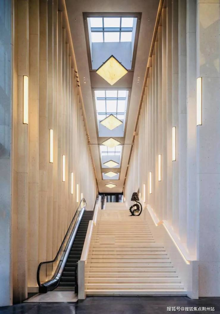 还是进入充满海派风情的旋转门后,约14.5米大堂挑空下,那直击灵魂的超长象牙白色长阶,交织在光影下,流露着温润与悠扬。