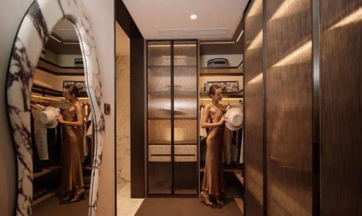 主卧大套房设计带超大主卫和衣帽间, 面积约50㎡ ,尺度感与市面上近300㎡的顶豪拉平。