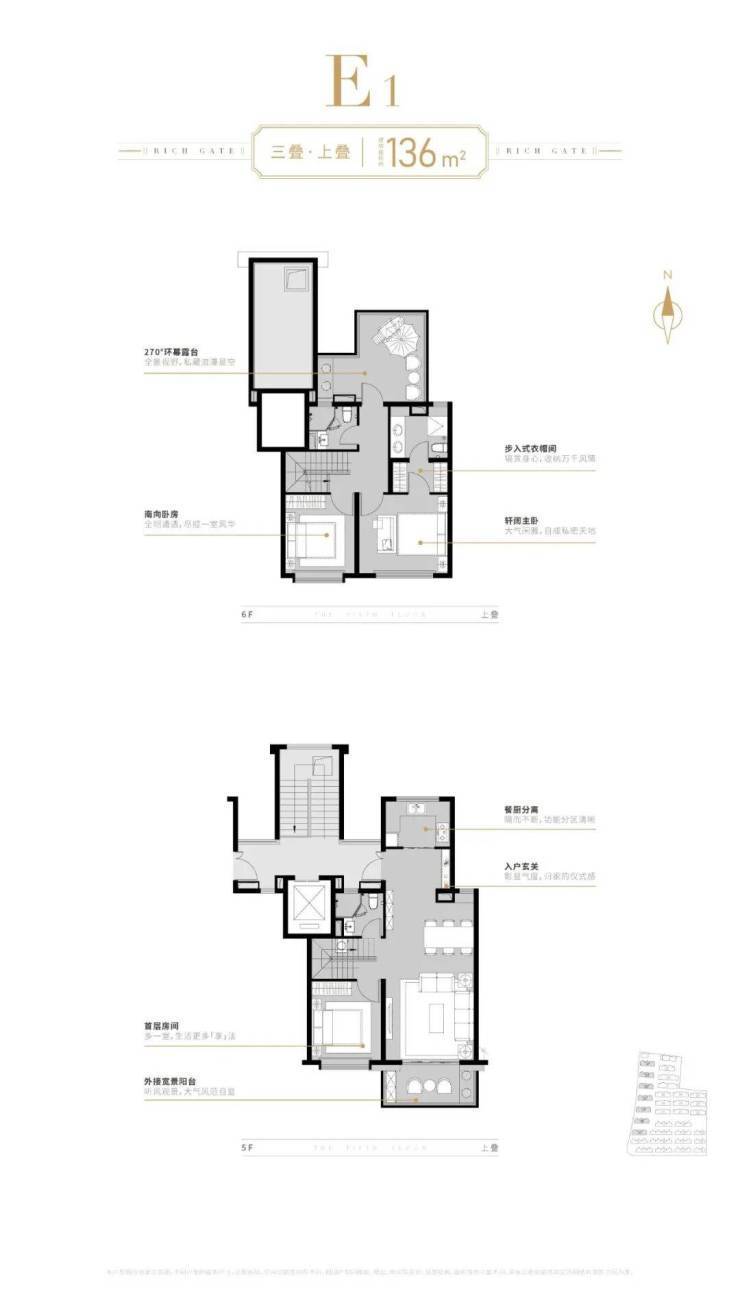 项目上叠分层而居,下层活动空间,南向大开间+南北通透,采光通风性能佳,尺度开阔;上层居住空间,主卧套房设计,北接星空露台;