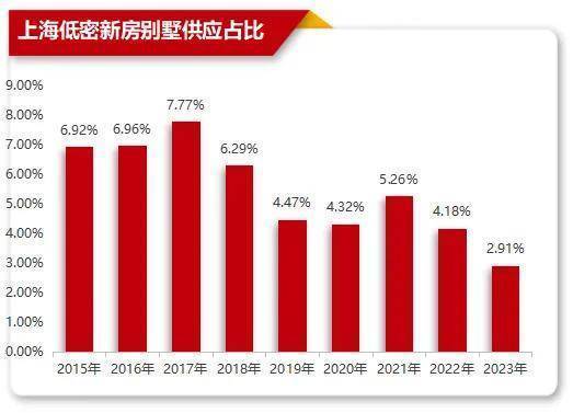 2018年以前,每年低密别墅产品的供应占比,尚能占到全市新房供应的7%左右,但这几年,这些别墅供应越来越少,2023年,供应占比甚至只有2.9%,一共只有2658套供应!
