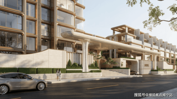 另一个在小区外一眼就能看到的就是这次中铁做的外立面体系。这次中铁给它的定义是「低密九宫格唯一的当代墅区」与「杨浦滨江首个全光幕立面270度环幕视野」大量的香槟金色铝板配上落地玻璃的超大通透度,让每一个转角的圆弧都熠熠生辉。