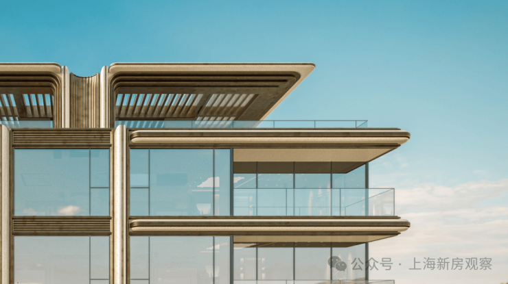 在立面表达上,「金茂满誉」彻底脱下了传统豪宅那层“老派的石材铠甲”,转而采用了极具现代艺术感的“克里姆特金箔立面”。
