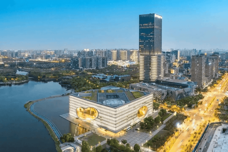 远香湖中央活动区有保利大剧院、最美图书馆“嘉定图书馆”、安藤忠雄设计的凯越大酒店等全新文化地标,这里未来还将建设文化环、未来塔、活力谷等城市“新三件套”。