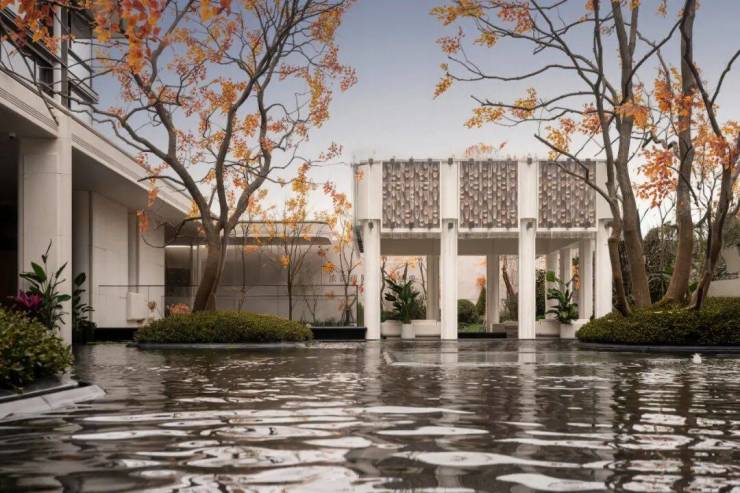 蜿蜒在水院中的神性洄廊,则复刻大师路易斯·康的经典美学,以黄金比例柱列捕捉光影,