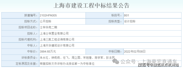 2022年2月8日,上海天华建筑设计有限公司以3994.65万元中标士林华苑二期地块设计项目!