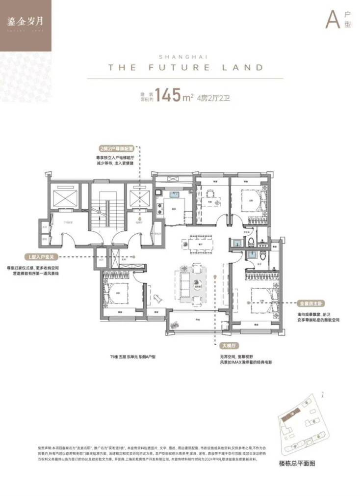 3、建面约145㎡4房:奢阔横厅,定制多元生活场景