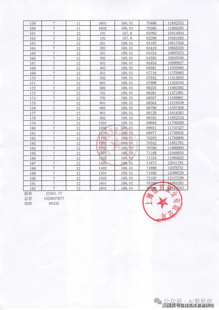 项目一房一价表▼