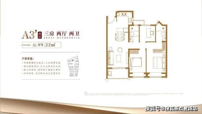 具体细节方面,项目目前只有一个建面约100㎡三房的样板间,带软装后面宽约3.3米,吊顶后层高约2.73米。