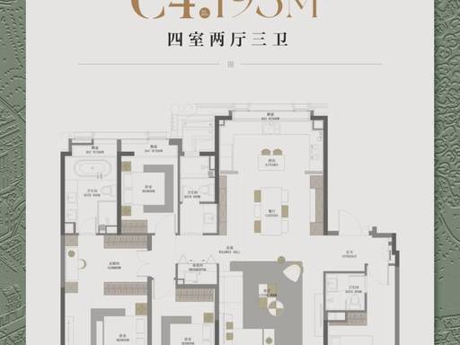 5. 建面约 193㎡ 四房两厅三卫(C1/C2 户型)