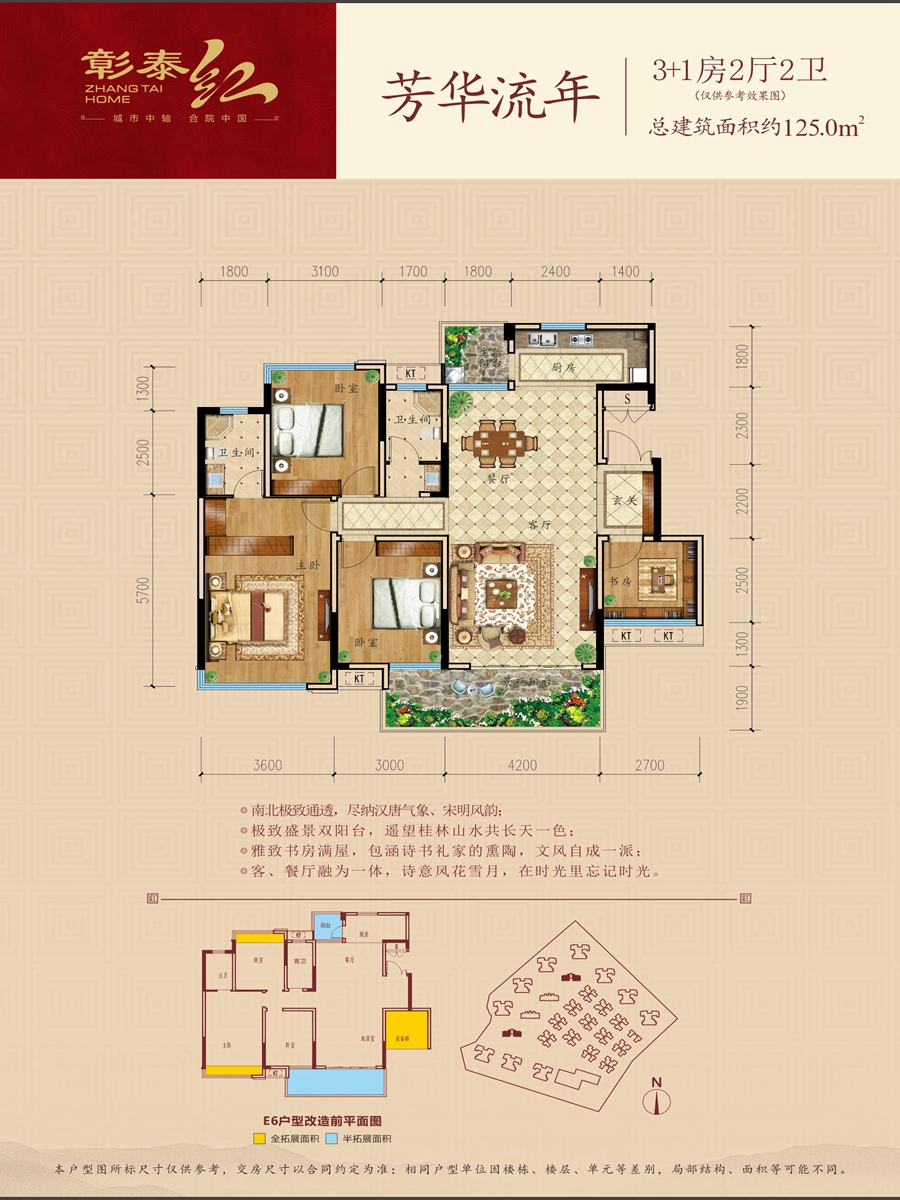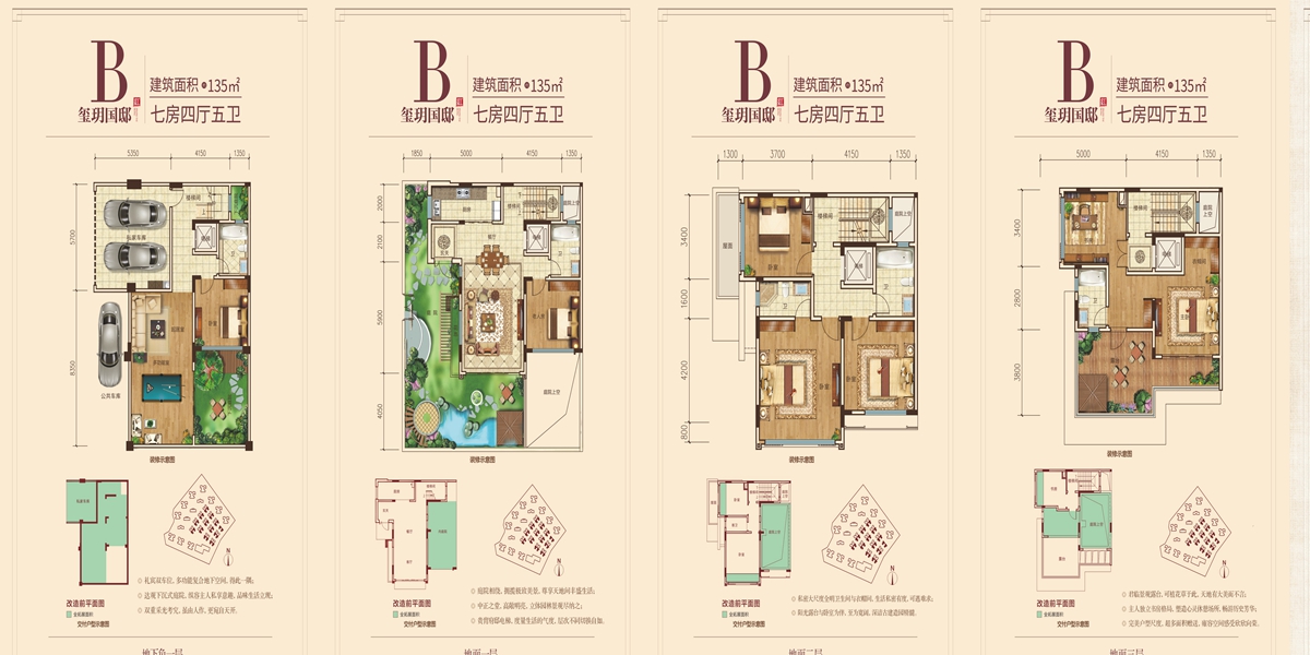 经过多地考察、反复论证,彰泰红推出桂林首创的合院式别墅。中国人爱院子,无论是国还是家,反映到建筑上即是围合,反映到生活上即是院子。彰泰红合院别墅为地上3层、地下1层的产品设计,超大露台、围合庭院等别墅配套一应俱全,并设置专属停车库,停车直接入户。在户型设计上,对面积进行严格控制,单套建筑面积约140㎡,可扩展面积预计可达180㎡,整体可使用面积预计可达320㎡,可做到7房设计,居住体验感远远高于同等面积段的大平层产品,从性价比方面考虑又远优于市场其他别墅。彰泰红合院别墅是改善性居住需求的不二选择。