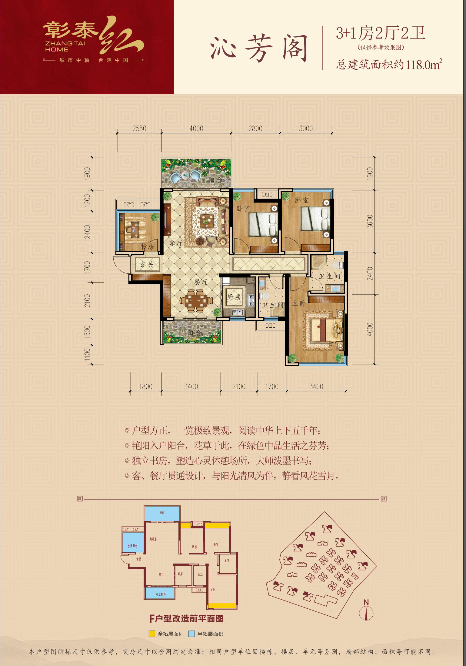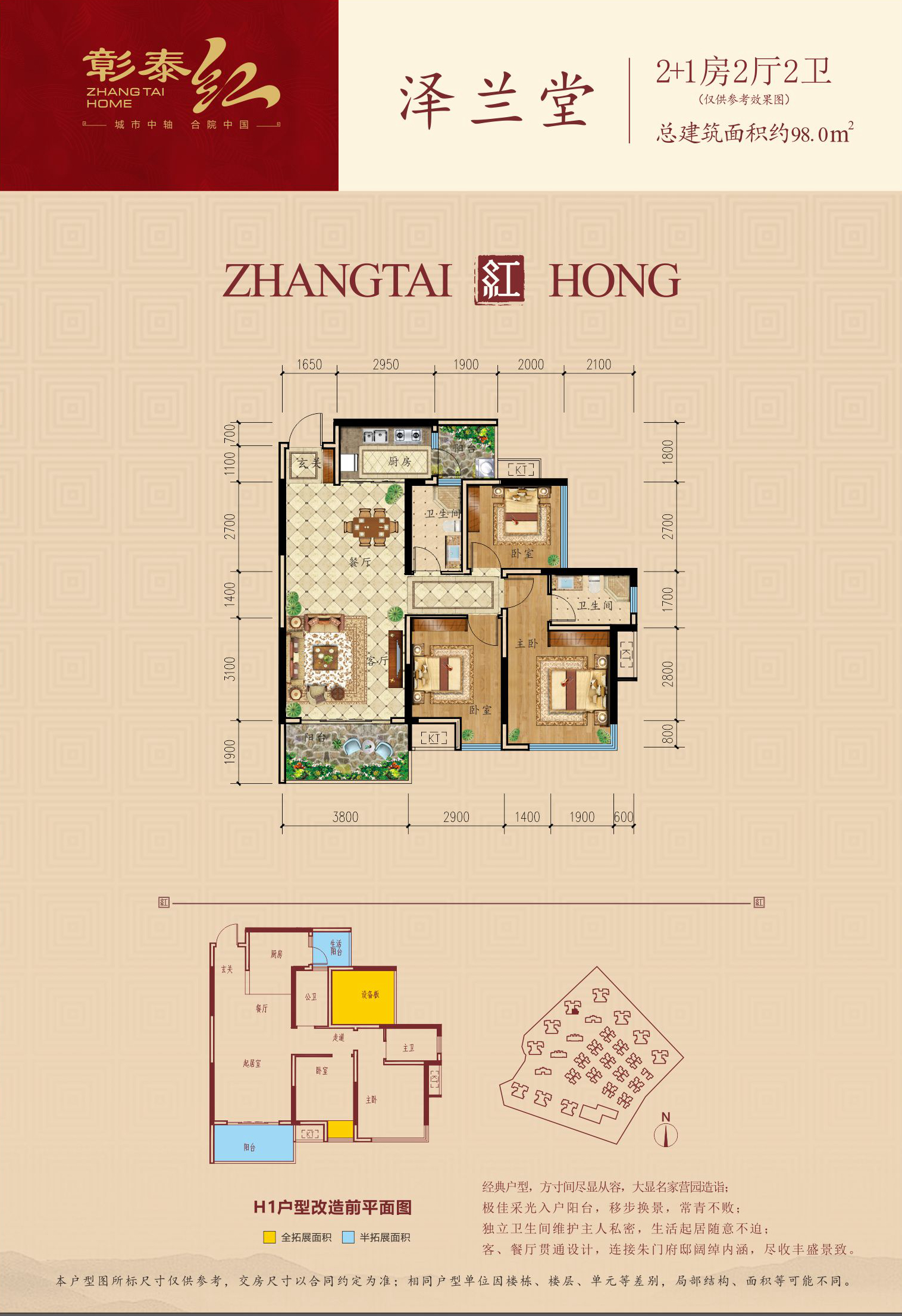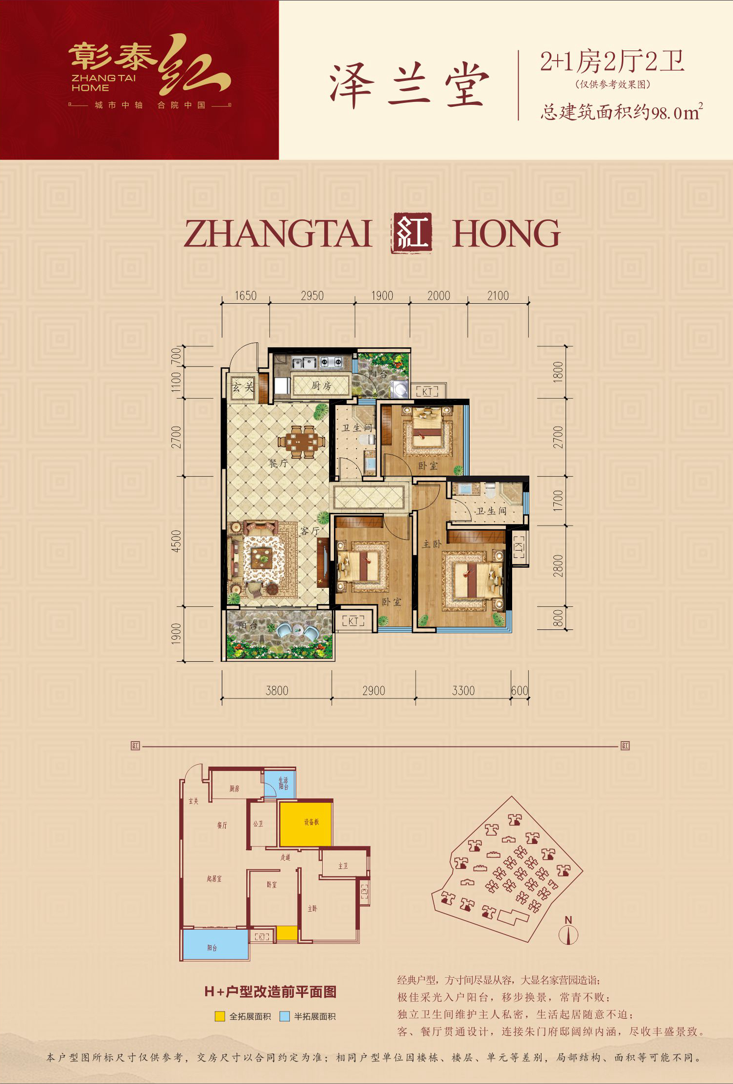 高层住宅户型设计,经过25年来不断的引进创新设计理念,借鉴了彰泰城市一号、欢乐颂、滟澜山等不同项目的产品优点,并在此基础上进行改进和升级,使用高赠送面积、零公摊的理念,讲究短深度、高通透、注重采光的设计,可谓集团公司创新精品社区的典范,更加符合客户的居住需求。彰泰红高层住宅产品为2梯4户,全部采用N+1式的高赠送创新型户型,面积区间为约92㎡2+1房2厅2卫和113㎡的3+1房两厅两卫,赠送面积可高达30%,在满足了不同客户需求的同时也兼顾了房子的空间感和性价比。