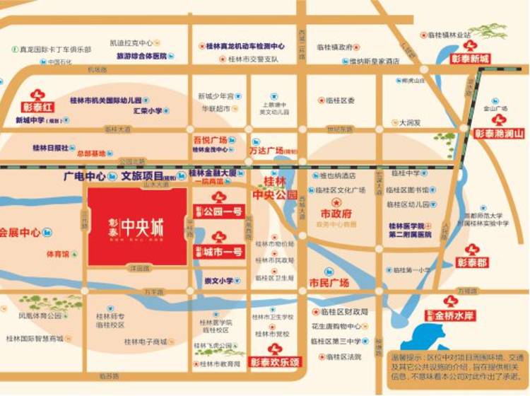 一院两馆、会展中心、中央公园、环城水系、汇荣小学、临桂区第三中学、桂林市国际机关幼儿园、旅游综合体医院、桂林医学院第二附属医院