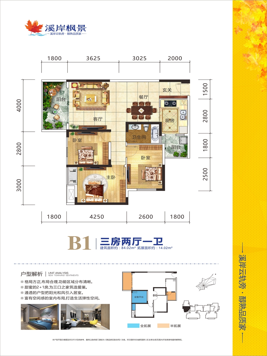 城市发展核心地段,居于繁华中央,成熟配套,俯瞰一线稀缺水景,畅享75-143㎡N+1高拓舒适空间,拥新老城区繁华配套,享新区发展红利和老城区醇熟配套。出门即享云轨便捷生活,周边名校环绕,书香世家,享近万㎡加拿大风情园林。溪岸美宅,藏一城水岸枫情。