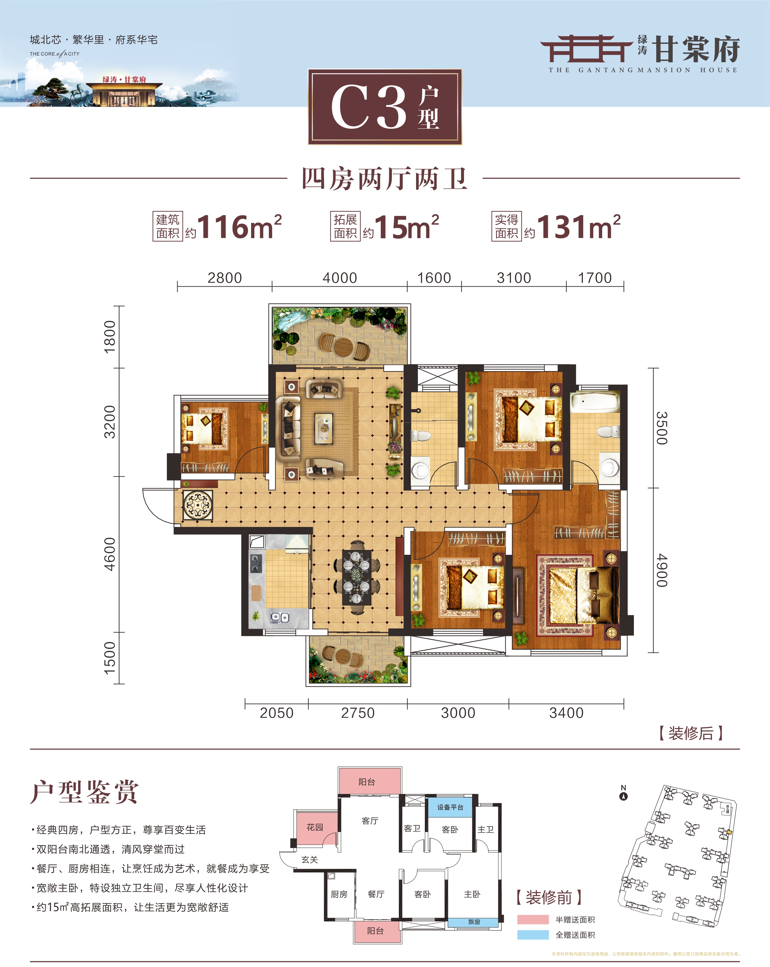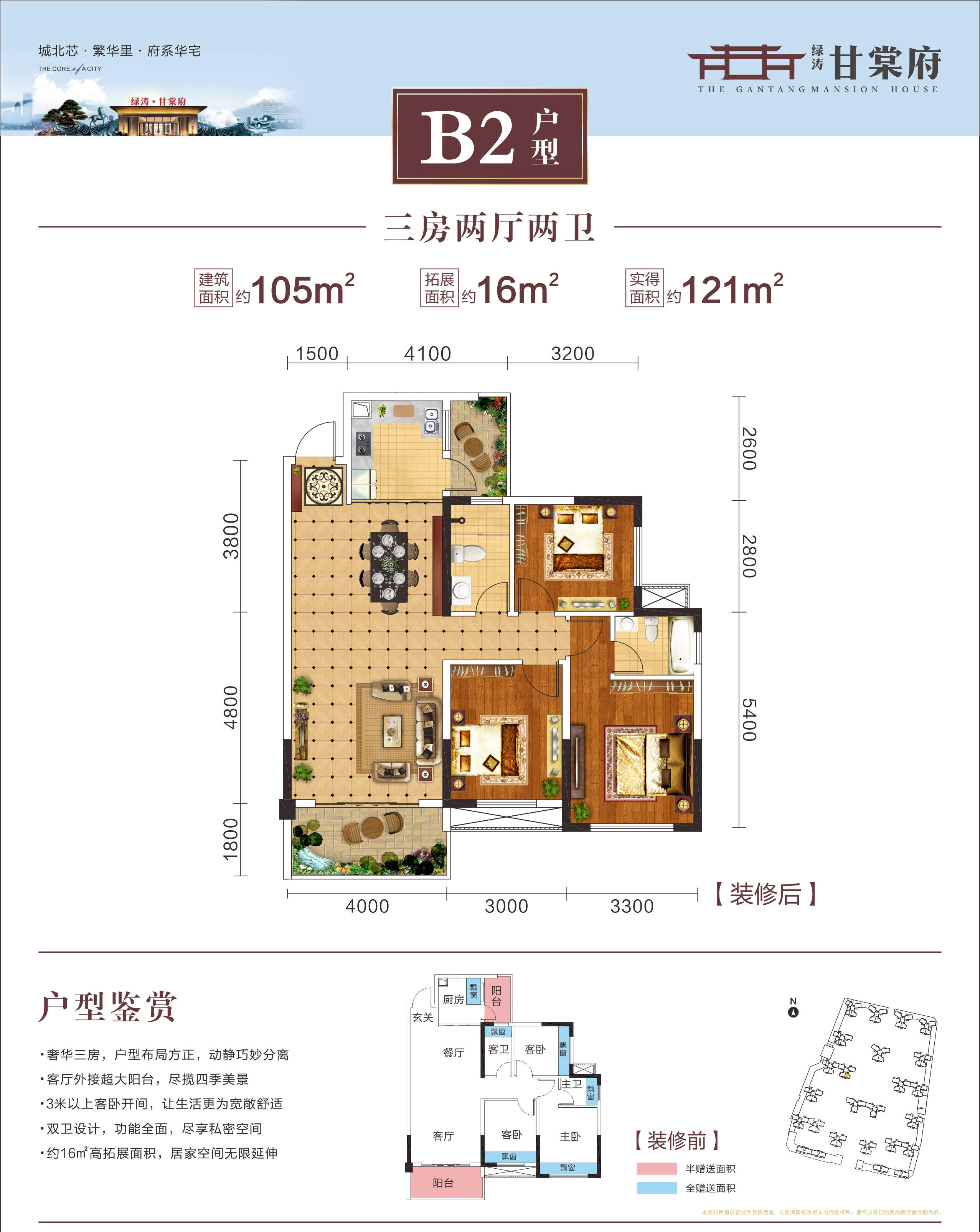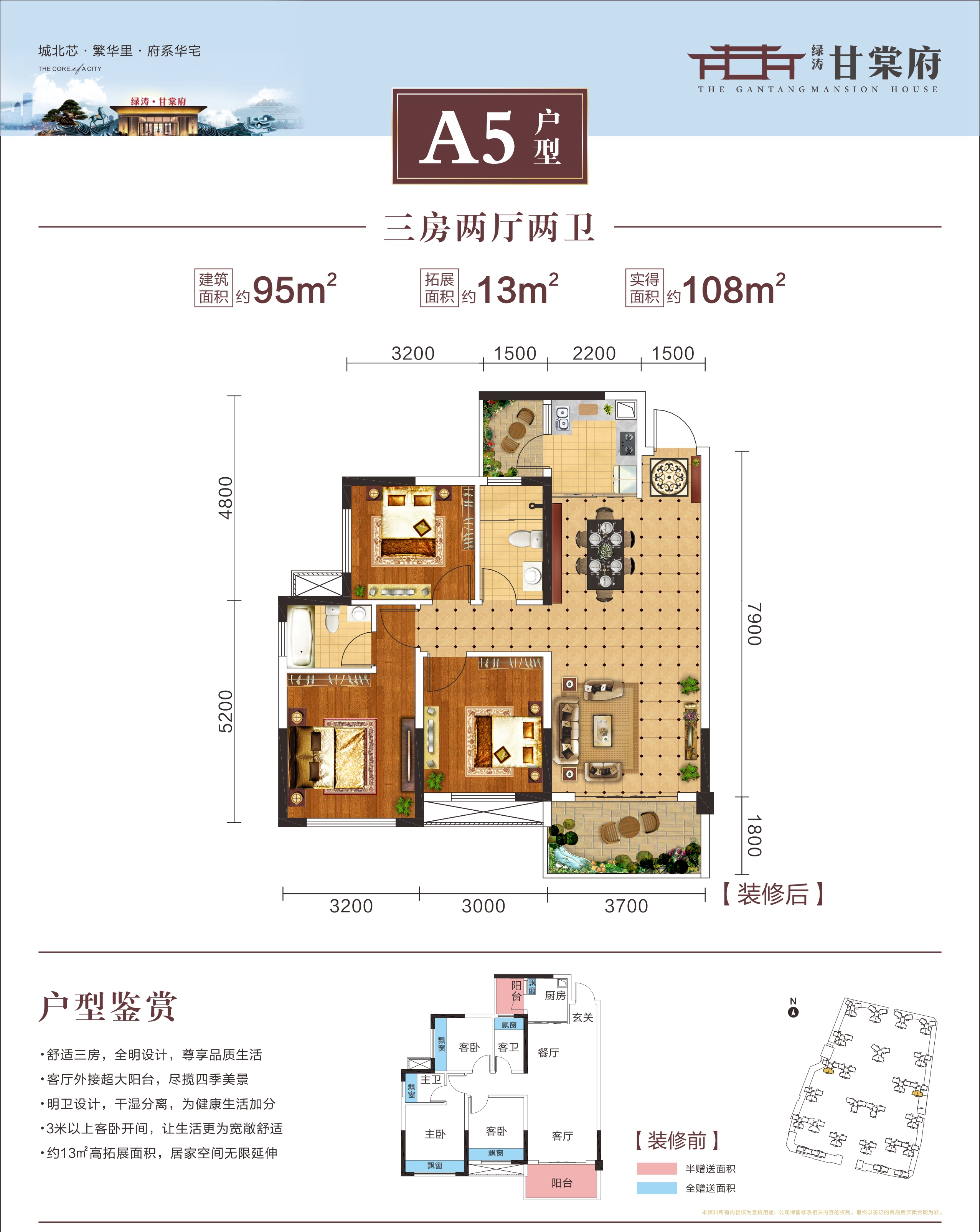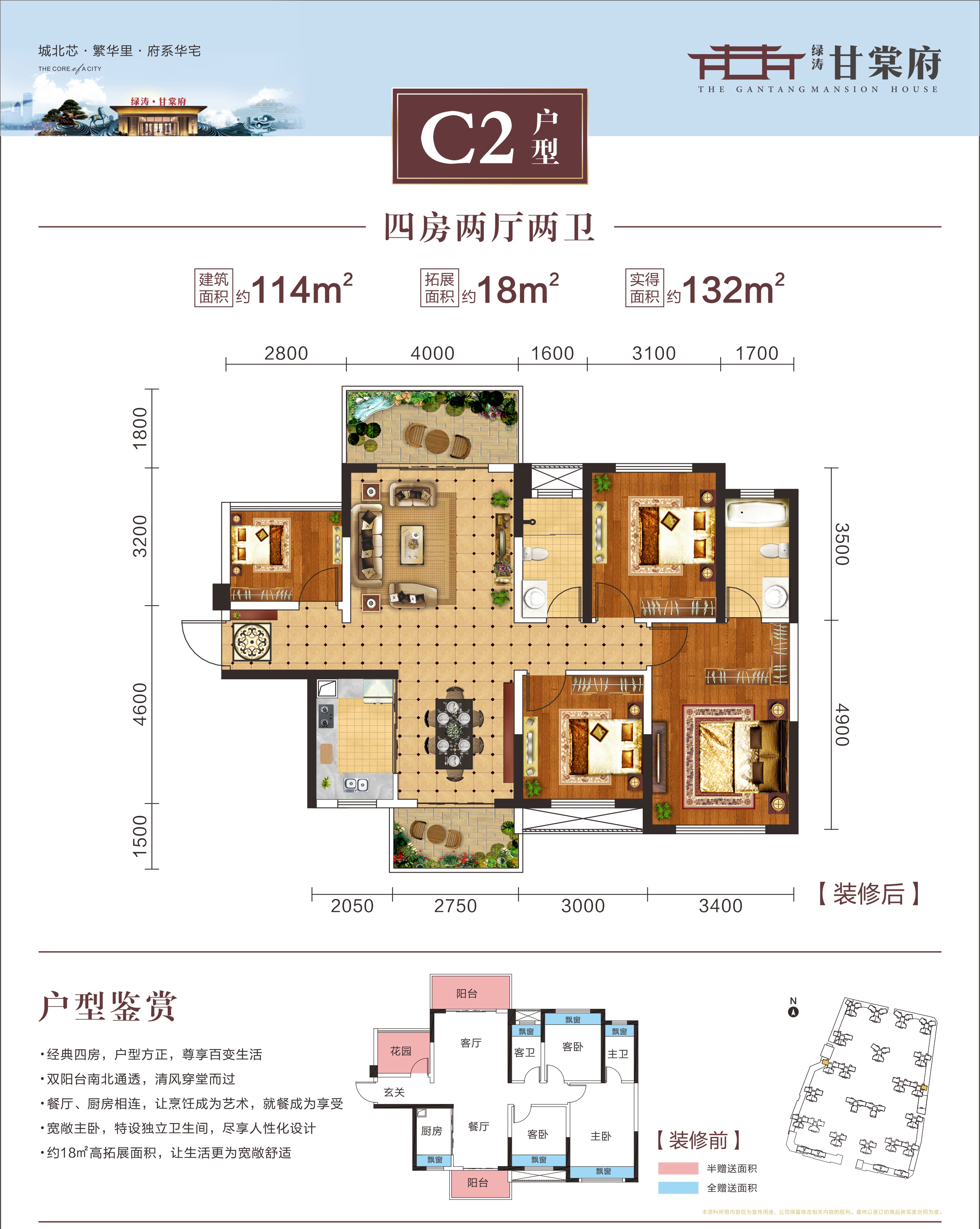 在售 户型方正 主卧带卫 观景落地窗 双阳台
